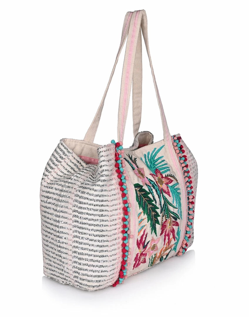 A bed of hand woven jacquard is home to thousands of hand embellished beads and embroidery creating a splash of jungle flowers in shades of petal pink and fuscia. A truly stunning tote, the Jungle Flowers Tote is a fashionista must. The craftsmanship combined with the classic style makes this bag truly special. Grab this limited edition bag now, there are only a few to keep it special!