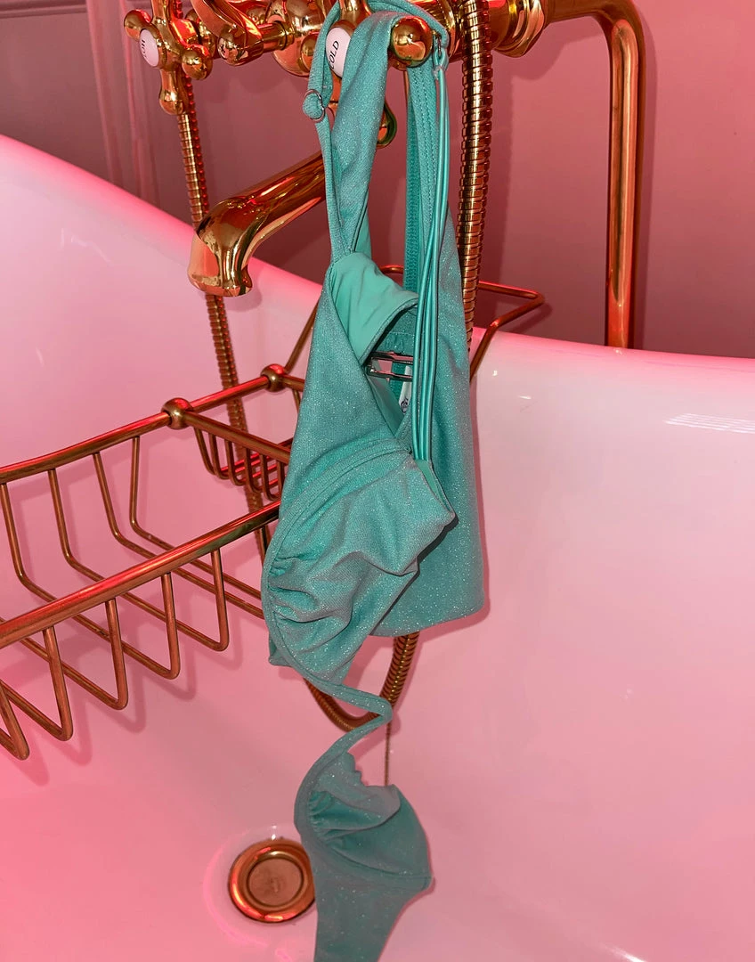 Stay on trend with our Austin glitter underwire top. This sexy bikini top features exposed underwire in the front with a latch closure in the back. Great for that little boost you were looking for!
