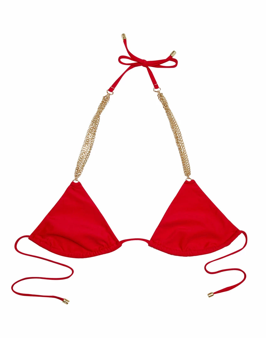The Ball and Chain is one of the most iconic Beach Bunny bikinis! This bikini features gold chain hardware and now offered in a RED HOT colorway!