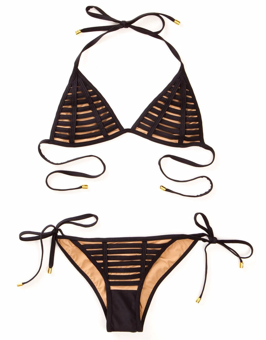 Our Hard Summer group is definitely one of our sexiest bikinis. The rows of binding nude lining to give the illusion of skin.