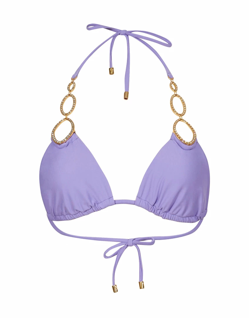 The Paisley Triangle Top is one of our newest hardware pieces. It features extravagant rhinestone embellished hardware. Great for pool parties!