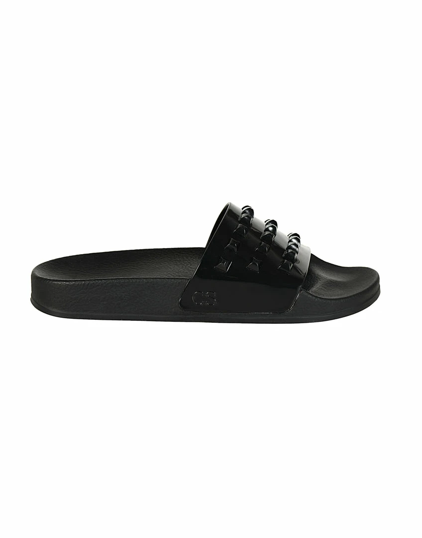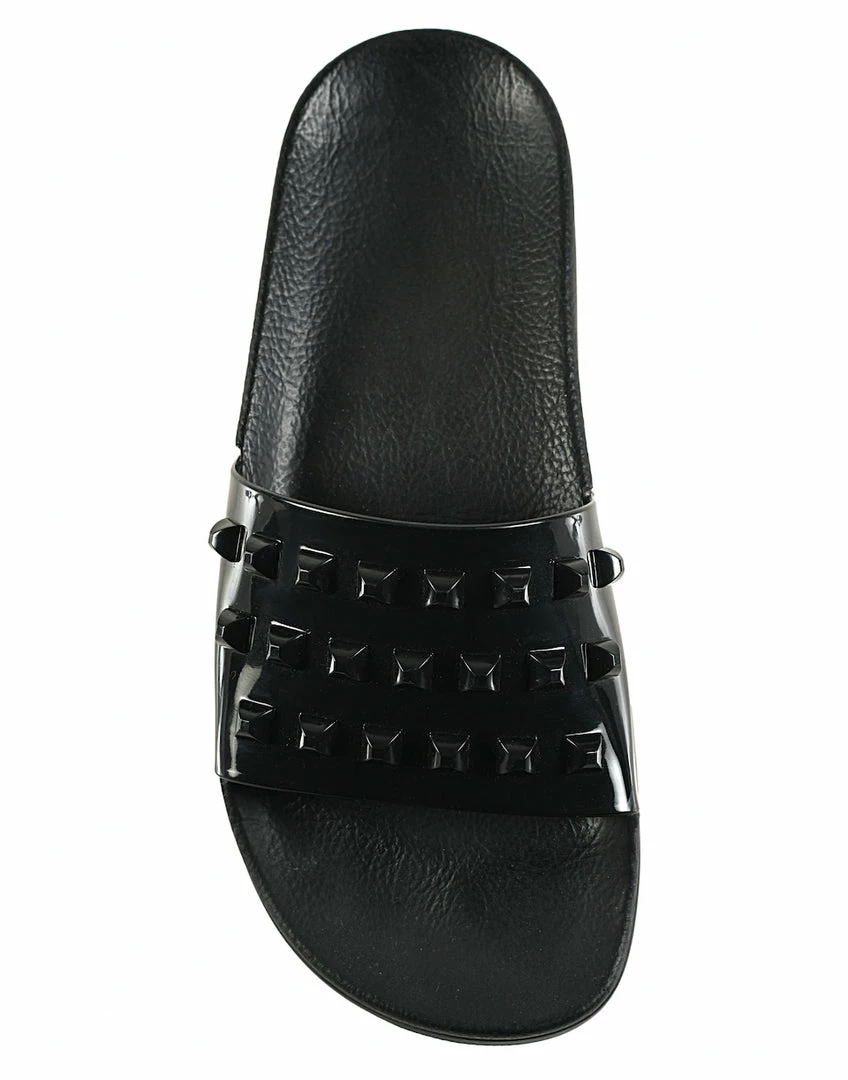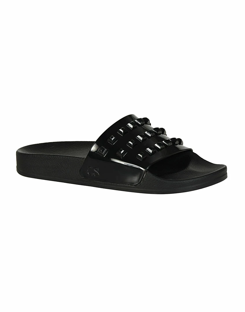 Looking for a new sandal? The Franco sandal is a slide style with a studded band and black molded footbed.