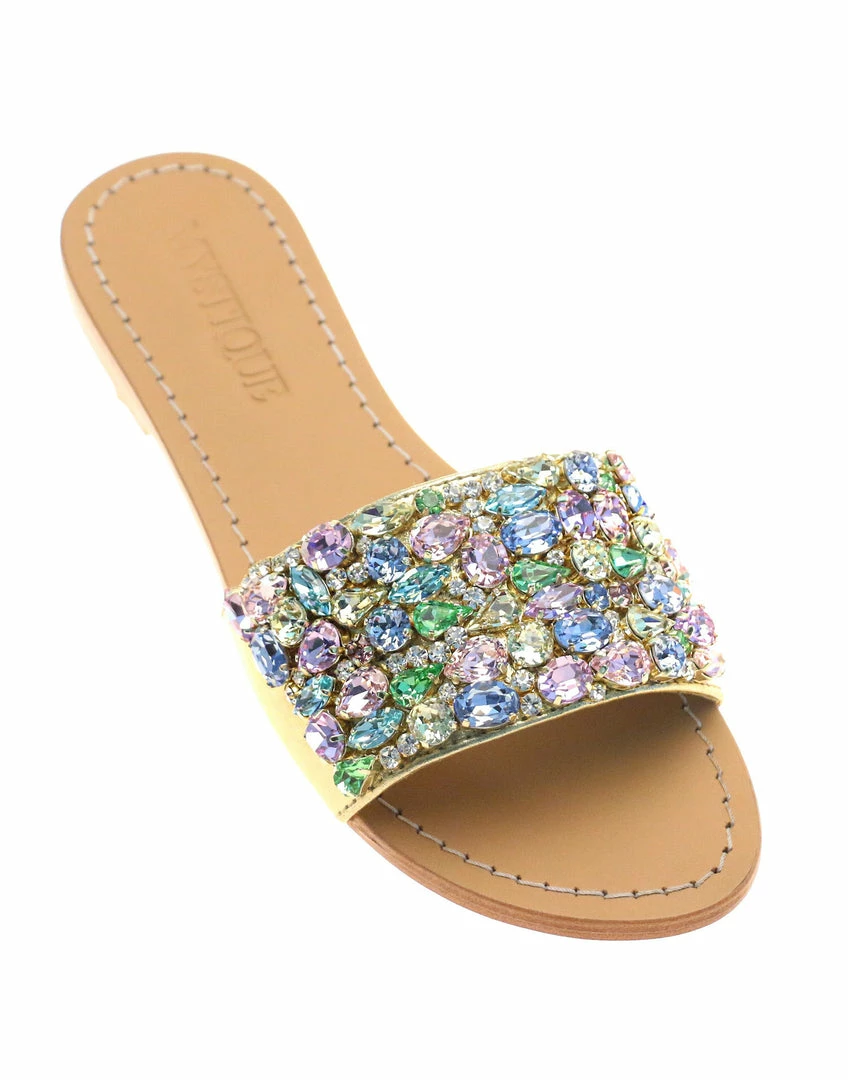 The Colorado sandals are handmade, lined with suede for added comfort and embellished with Czech crystals and rhinestone chain.