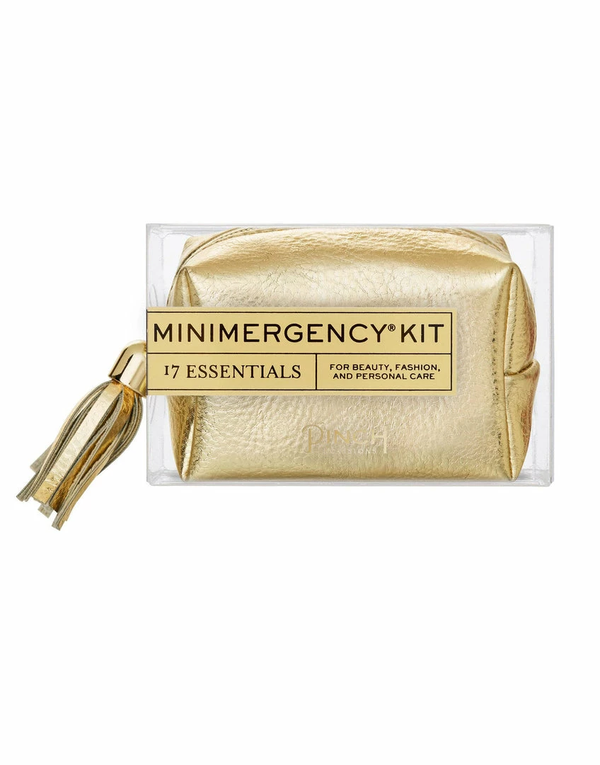Pop some precious metal into your purse with the Metallic Tassel Minimergency Kits. With 17 beauty, personal care, and style essentials, these shiny pouches with tassels contain everything a gal needs…IN A PINCH!